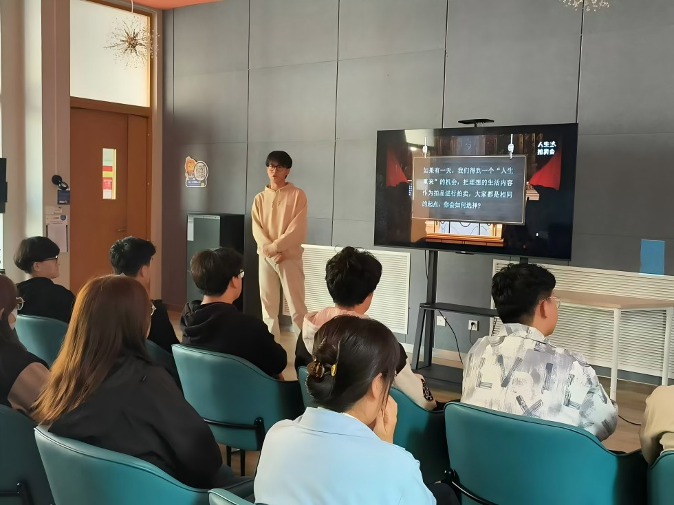 人生拍賣會——抉擇與思考 2024 年 10 月 22 日,一場別開生面的主題班會——“人生拍賣會”在汶陽書院112活動室精彩舉行。本次拍賣會以就業(yè)創(chuàng)業(yè)為主題,16 件獨特的拍品引發(fā)了同學(xué)們的深度思考和熱烈競拍。