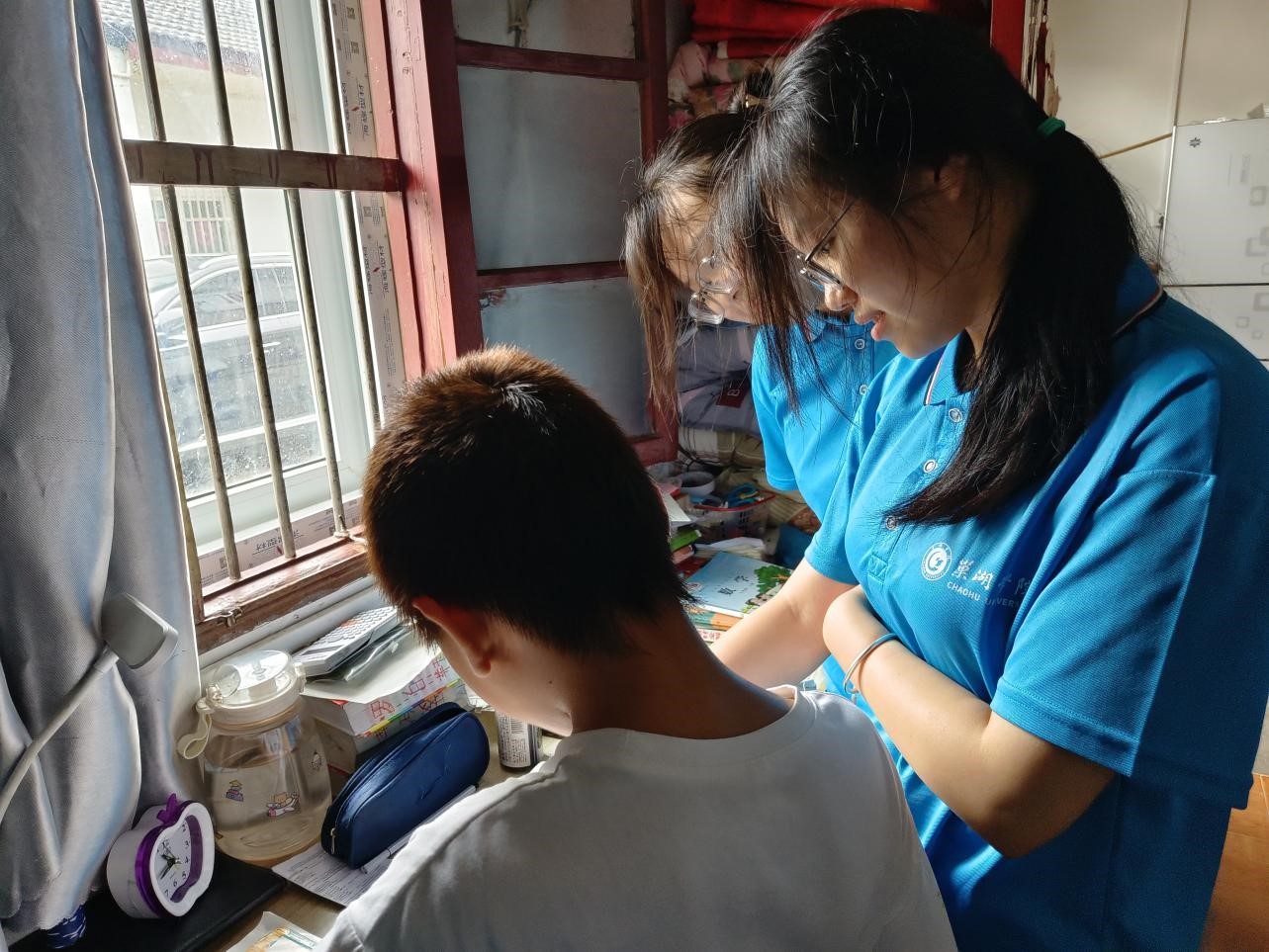 圖為志愿者輔導(dǎo)螞蟻寶貝功課。 梅婷 /提供