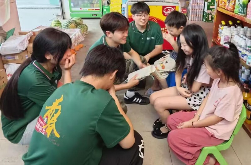 圖為實(shí)踐團(tuán)成員對(duì)兒童進(jìn)行防溺水安全教育宣傳。劉順順攝