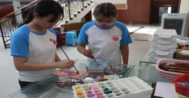 (實(shí)踐團(tuán)體驗(yàn)版畫(huà)上色,重慶師范大學(xué)外國(guó)語(yǔ)學(xué)院供圖)