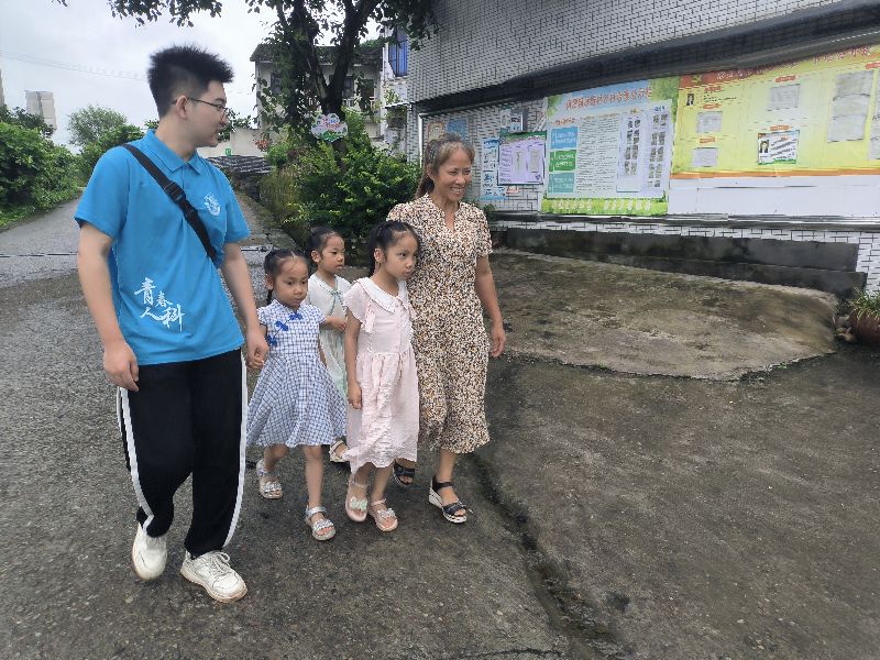 圖為團(tuán)隊(duì)成員帶領(lǐng)孩子們前往活動(dòng)室 周子淳攝