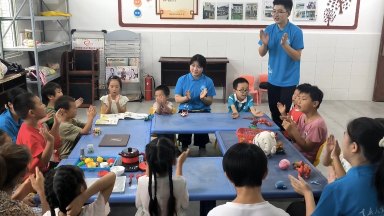 圖為團(tuán)隊(duì)成員與孩子們交流 周子淳攝