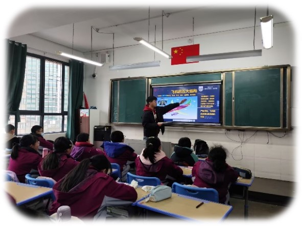 活動(dòng)現(xiàn)場,實(shí)踐隊(duì)員們以互動(dòng)引導(dǎo)的形式,投入到航空航天知識科普中。他們生動(dòng)講述 航空歷史,從人類伊始對飛行的憧憬,到首架飛機(jī)誕生,再到現(xiàn)代航空技術(shù)發(fā)展,將同學(xué)們 帶入航空發(fā)展長卷,同學(xué)們?nèi)褙炞ⅲx躍互動(dòng)。隊(duì)員們還播放飛行短片,讓同學(xué)們領(lǐng)略飛 行魅力,不時(shí)驚嘆。經(jīng)由這般多維度的科普方式,同學(xué)們對航空航天知識有了更透徹的理解。