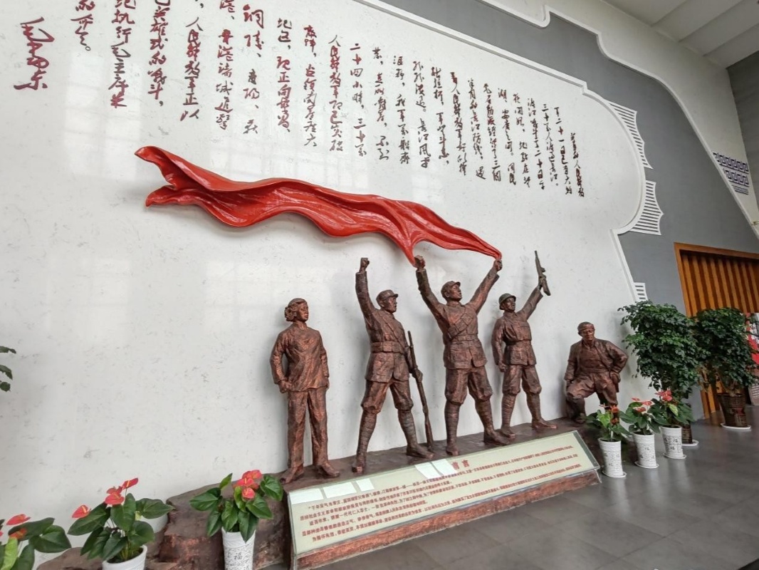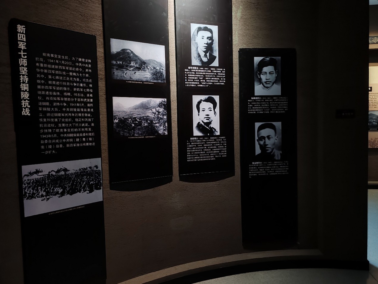 銅陵烈士紀念館坐落于義安區(qū)五松鎮(zhèn)笠帽山南側(cè)區(qū)域,以現(xiàn)狀烈士塔為中心,被翠綠的山體、茂盛的植被環(huán)繞,陽光灑下,為這片神圣之地增添了一抹溫暖而莊重的色彩。踏入館內(nèi),映入眼簾的是“星火燎原”“抗日烽火”“地覆天翻”“衛(wèi)國建業(yè)”四個展廳。沿著展線緩緩前行,仿佛穿越時空隧道,回到了那個戰(zhàn)火紛飛的年代。一幅幅珍貴的歷史圖片、一件件飽含故事的實物展品、一組組生動的雕塑場景,在光電數(shù)字化技術(shù)的映襯下,鮮活地展現(xiàn)了銅陵先烈們的英勇事跡和波瀾壯闊的革命歷程。