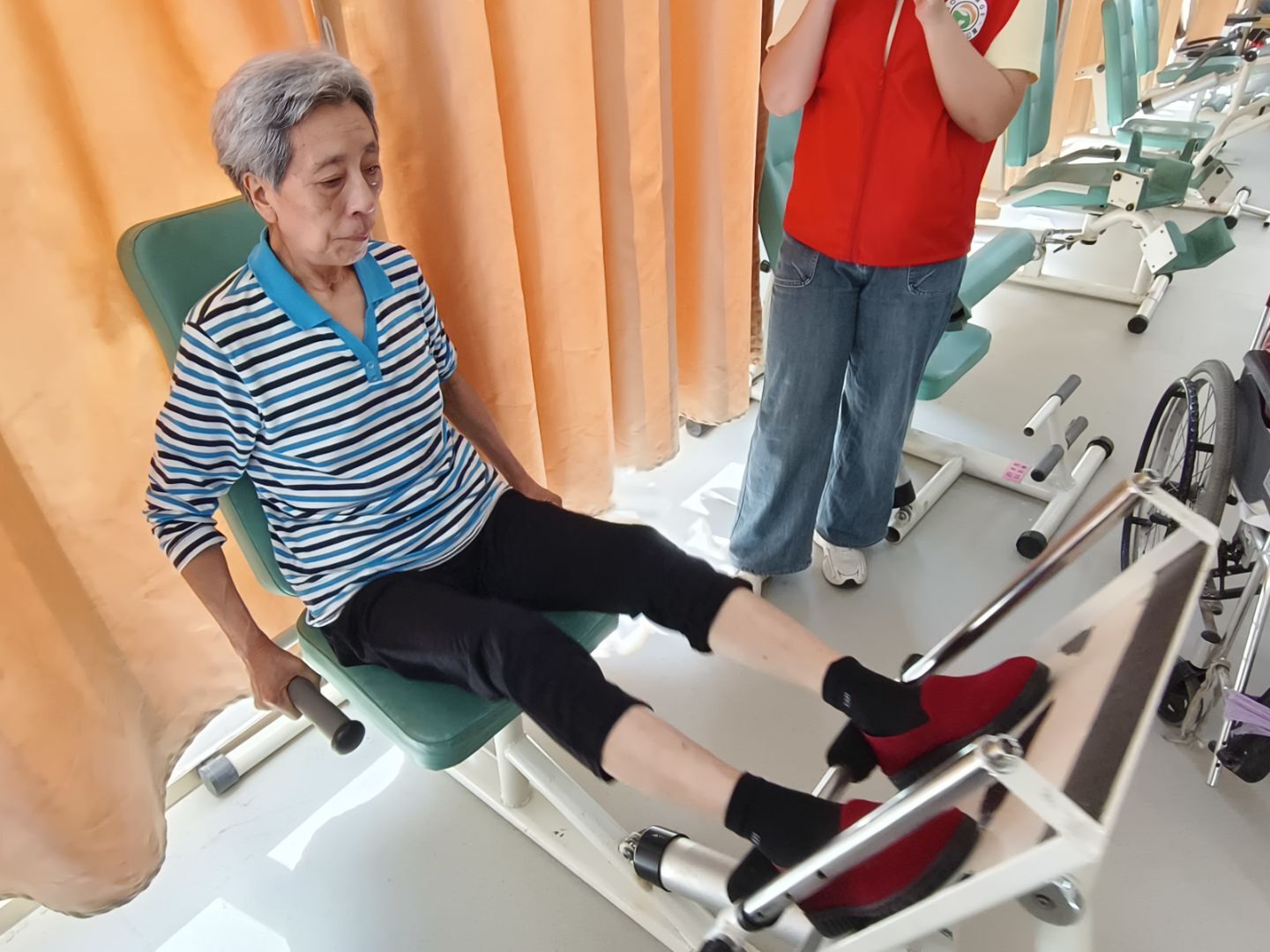 圖為實踐隊員輔助老人做康復活動。唐雨萌供圖