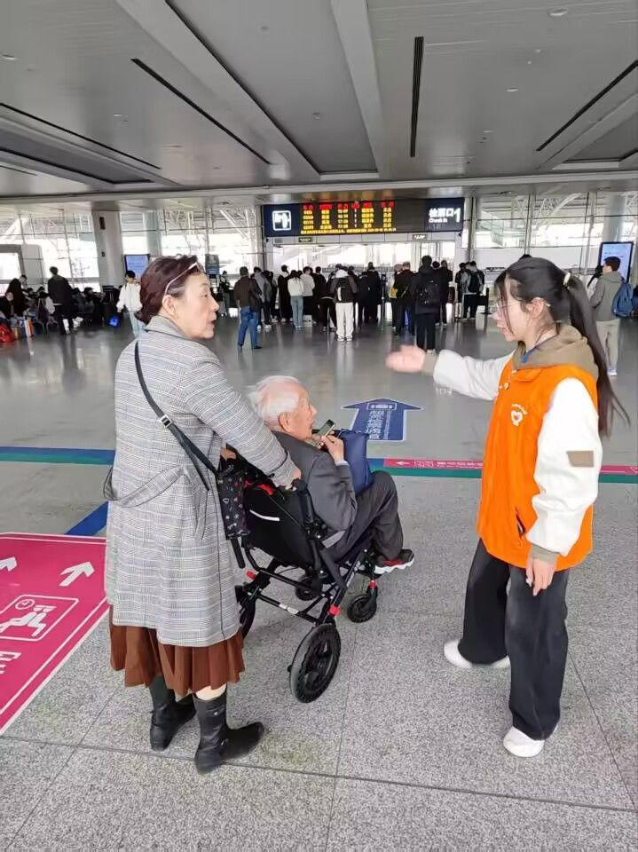 6月15日早晨,志愿者們準(zhǔn)時(shí)抵達(dá)泰州火車站,身著統(tǒng)一的“小甜橙”馬甲正式開始志愿服務(wù)工作。根據(jù)分工,他們迅速奔赴各自崗位:在自動(dòng)扶梯旁,有志愿者來回巡視,攙扶行動(dòng)不便的乘客上下電梯;在自助售票機(jī)區(qū)域,志愿者耐心指導(dǎo)旅客使用設(shè)備,解答購票疑問;在出站口,志愿者舉著引導(dǎo)牌,提示旅客有序出站并引導(dǎo)需要幫助的乘客前往咨詢臺(tái)或乘車點(diǎn)。志愿者們熱情周到的服務(wù),成為車站里一道亮麗的風(fēng)景線。