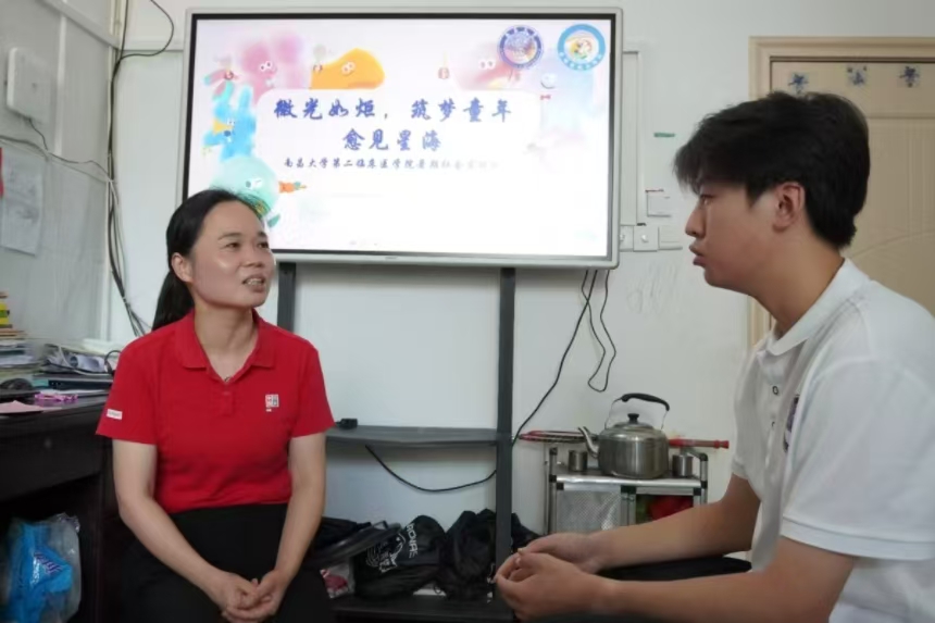 六月底的銅鼓縣,陽(yáng)光遍灑,溫暖而不炙熱。在陽(yáng)光益智康復(fù)中心整潔的庭院里,一群青春洋溢的身影與純真的笑聲交織躍動(dòng)。南昌大學(xué)“愈見(jiàn)星海”暑期實(shí)踐隊(duì)的大學(xué)生們,懷揣熱忱與善意,以真誠(chéng)與耐心為無(wú)形的橋梁,與一群特殊兒童共同編織出一幅充滿音樂(lè)旋律與心靈共振的溫暖畫卷。