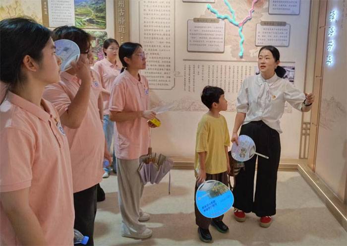 在羅寧古官道文化展示館,隊員們聆聽了講解員生動的講述。這條全長約33公里的古道,是福溫驛道的重要組成部分,自南宋起便成為連接閩浙的交通要道。北宋書法家蘇舜元曾在此題刻“才翁所賞樹石”,而陸游赴任寧德主簿時途經(jīng)此地,發(fā)現(xiàn)石刻后還特意吁請當(dāng)?shù)毓賳T加以保護,成為福州地區(qū)最早的文物保護案例之一。