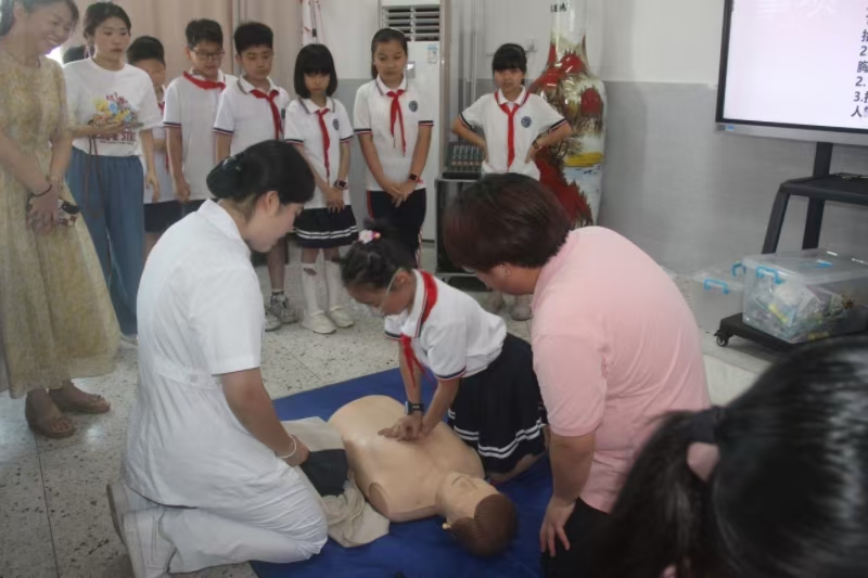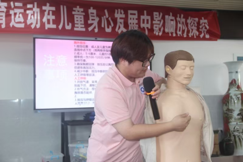 生命安全至關(guān)重要,急救技能更是不可或缺。志愿者們?yōu)樾∨笥褌儙砹薈PR(心肺復(fù)蘇)和海姆立克法的急救知識課程。考慮到這些知識的專業(yè)性和復(fù)雜性,我們采用了通俗易懂的語言和形象的比喻進(jìn)行講解。同時,我們還準(zhǔn)備了人體模型,現(xiàn)場演示CPR的操作步驟,從判斷意識、呼吸,到胸外按壓、開放氣道,每一個動作都力求標(biāo)準(zhǔn)規(guī)范。小朋友們充滿了好奇,當(dāng)他們站在模型前,小心翼翼地按照步驟進(jìn)行操作時,眼神中透露出的認(rèn)真與專注讓我們?yōu)橹畡尤荨?br />