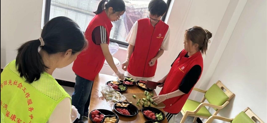 活動(dòng)的最后一個(gè)環(huán)節(jié)是制作果切。社區(qū)社工提前準(zhǔn)備好了新鮮的水果和工具,帶領(lǐng)大家一起動(dòng)手制作精美的果切拼盤。大家分工協(xié)作,有的清洗水果,有的削皮切塊,現(xiàn)場(chǎng)充滿歡聲笑語(yǔ)。通過(guò)親手制作果切,患者們不僅鍛煉了動(dòng)手能力,更在相互合作中增強(qiáng)了社交能力和自信心。