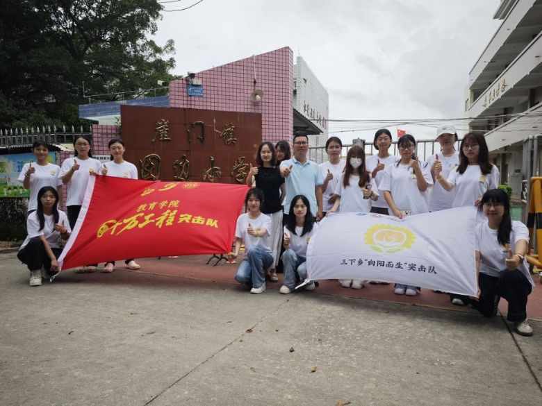 圖5為“向陽而生”突擊隊成員及指導老師與江門市崖門鎮(zhèn)田邊小學校長合影,陳海欣攝