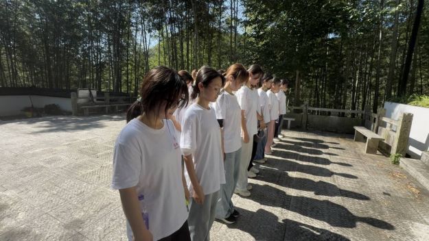 實(shí)踐團(tuán)首站抵達(dá)廣德柏墊鎮(zhèn)英烈山。這里,蒼松翠柏環(huán)繞,記錄著革命先輩舍生取義的壯烈。面對(duì)莊嚴(yán)肅穆的英烈墻,全體成員整齊列隊(duì),以莊嚴(yán)默哀的儀式,向?yàn)楦锩聵I(yè)英勇獻(xiàn)身的英烈致以崇高敬意。