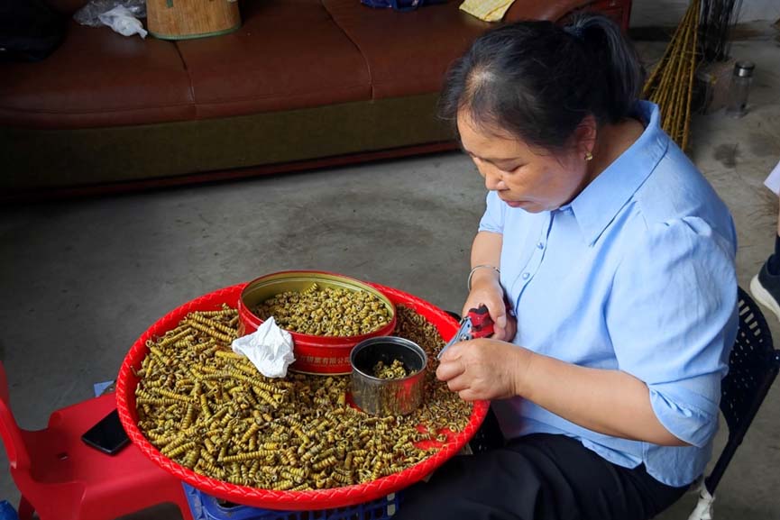 調(diào)研行程中,團(tuán)隊(duì)特別走進(jìn)霍山衛(wèi)星石斛有限公司的手工生產(chǎn)基地,目睹傳統(tǒng)石斛加工技藝的傳承與創(chuàng)新。生產(chǎn)車間內(nèi),數(shù)十位村民圍坐在一起,熟練地進(jìn)行著石斛鮮條的分揀、晾曬、纏繞等工序。阿姨將半干的石斛莖條在特制模具上精準(zhǔn)纏繞:“這是制作楓斗的關(guān)鍵步驟,每根楓斗要繞12圈,松緊度全靠手感。”同時(shí),公司采取“企業(yè)+農(nóng)戶”模式,培訓(xùn)村民掌握分揀、烘焙、塑形等10余項(xiàng)手工技藝,將分散的家庭式加工轉(zhuǎn)化為標(biāo)準(zhǔn)化工坊生產(chǎn),目前已帶動(dòng)十余戶村民在家門口就業(yè),人均年收入數(shù)十萬(wàn)元。