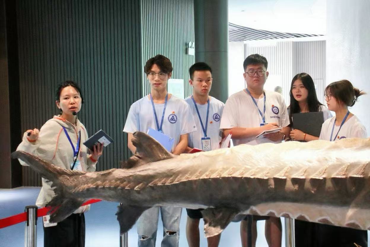 圖為團隊成員聆聽講解,觀看中華鱘標本 涂鑫然攝