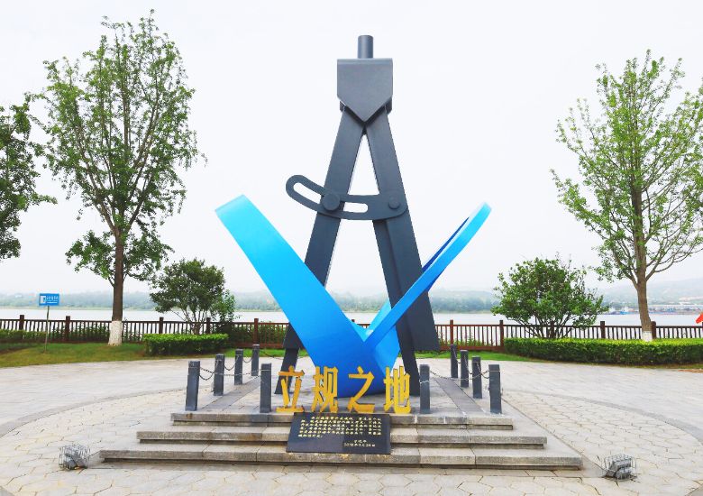 調(diào)研過(guò)程中,團(tuán)隊(duì)在以"生態(tài)優(yōu)先、綠色發(fā)展"為主題的規(guī)矩廣場(chǎng)開(kāi)展問(wèn)卷調(diào)查,重點(diǎn)了解市民對(duì)長(zhǎng)江禁漁等政策的認(rèn)知度。廣場(chǎng)中央的銀色圓規(guī)雕塑寓意"立規(guī)矩、守底線",成為市民駐足學(xué)習(xí)長(zhǎng)江保護(hù)理念的打卡點(diǎn)。此外,隊(duì)員們還深入長(zhǎng)江步道系統(tǒng),該步道以長(zhǎng)江流域地圖為設(shè)計(jì)靈感,沿途標(biāo)識(shí)宜昌各區(qū)縣位置,通過(guò)實(shí)地走訪采集到大量沿江生態(tài)修復(fù)的一手資料。