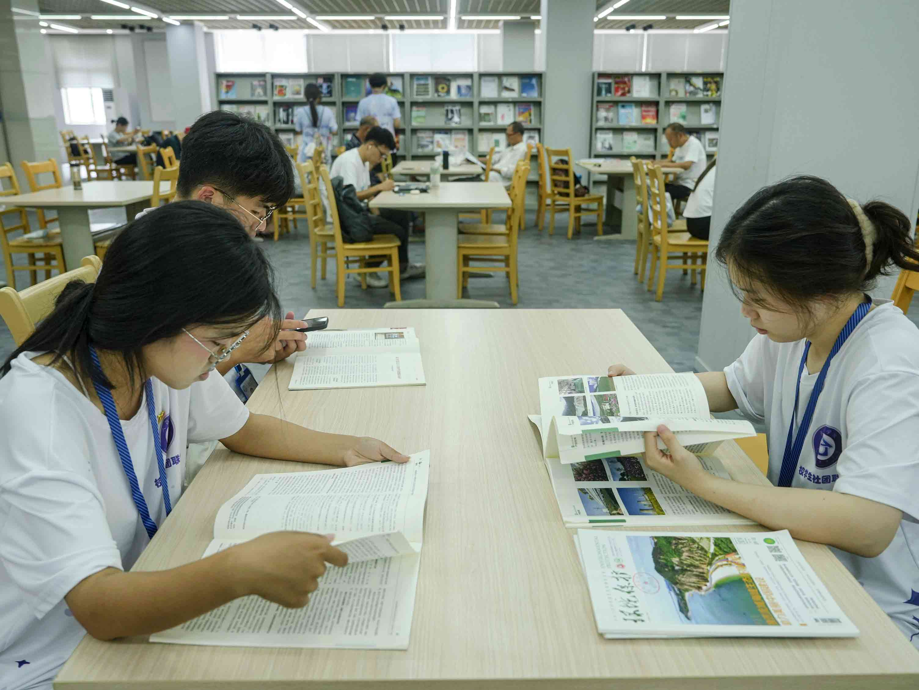 圖為團隊成員在宜昌市圖書館進行資料的查找(翁敏欣供圖)