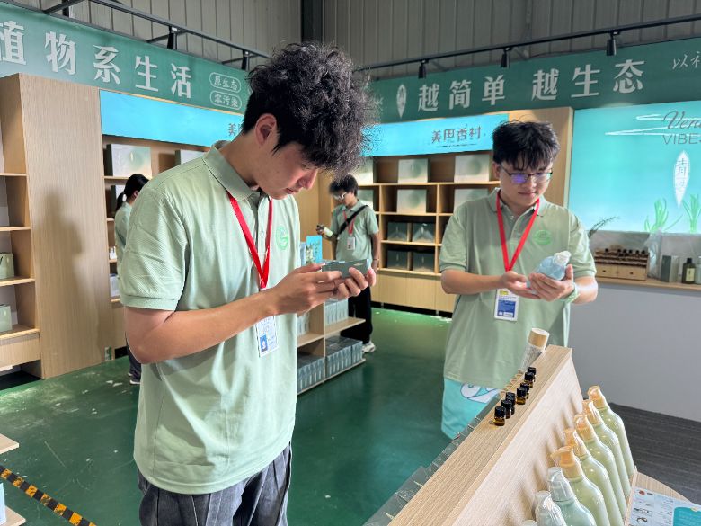 在迷迭香基地負(fù)責(zé)人田師傅的帶領(lǐng)下,志愿服務(wù)隊(duì)深入產(chǎn)業(yè)一線,在迷迭香成品展覽中心,琳瑯滿目的保健茶飲、美容護(hù)膚、芳香精油等產(chǎn)品,展現(xiàn)了迷迭香從植物到商品的多元價(jià)值,隊(duì)員們深入了解產(chǎn)品特性與市場定位,對特色農(nóng)業(yè)產(chǎn)業(yè)鏈有了初步認(rèn)識。