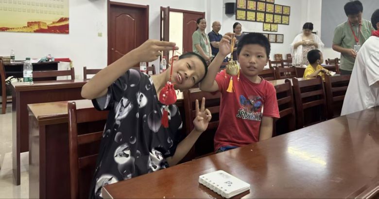 圖為孩子們展示制作的香囊成果 陳柄瑞 供圖