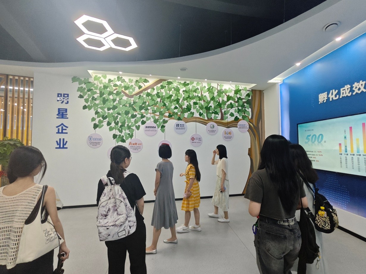 實(shí)踐隊(duì)還參觀位于福州軟件園雙創(chuàng)共享空間,進(jìn)一步了解基地為初創(chuàng)企業(yè)培育高質(zhì)量發(fā)展引擎、提供專業(yè)服務(wù)的主要做法。展廳墻上展示的眾多成功雙創(chuàng)案例,生動(dòng)展現(xiàn)了基地在支持雙創(chuàng)方面的卓越成效。