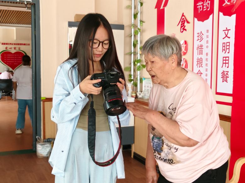 除了專業(yè)服務(wù),隊(duì)員們還為老人們拍攝生活照,用鏡頭記錄下他們圍坐聊天、閱讀報(bào)紙的溫馨場(chǎng)景。“爺爺,您看鏡頭,笑一笑!”快門聲此起彼伏,定格的不僅是幸福畫面,更是濃濃的關(guān)愛。