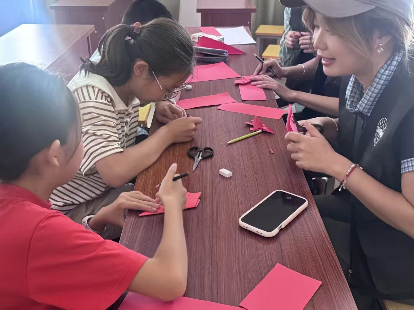 圖為實(shí)踐團(tuán)成員剪紙教學(xué) 劉妍攝