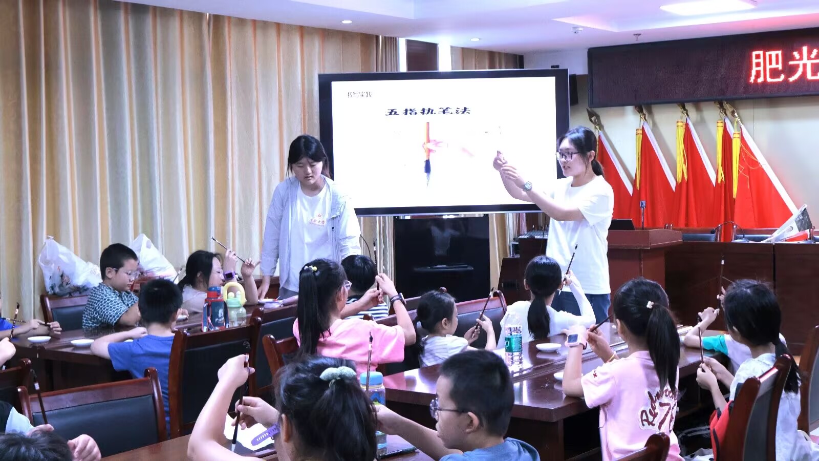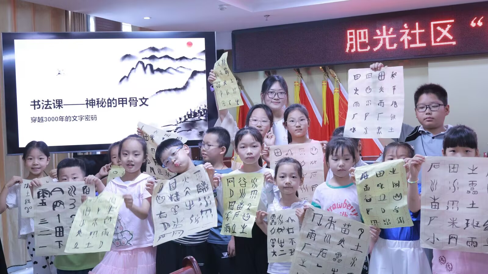 7月2日上午,合肥大學(xué)教育學(xué)院“薪火傳鄉(xiāng)韻,師苑‘育’童心”三下鄉(xiāng)志愿服務(wù)隊(duì)走進(jìn)合肥市肥西縣上派鎮(zhèn)肥光社區(qū),教師高嘉琦以“甲骨文探秘”為主題,精心打造一堂別開生面的書法課,并通過趣味互動與沉浸式體驗(yàn),引領(lǐng)孩子們走進(jìn)三千年前的漢字世界,深切感受中華優(yōu)秀傳統(tǒng)文化的深厚底蘊(yùn)。