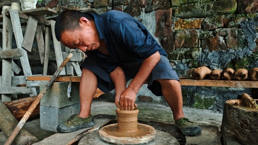 圖為彭爺爺制陶現(xiàn)場 劉瑤攝