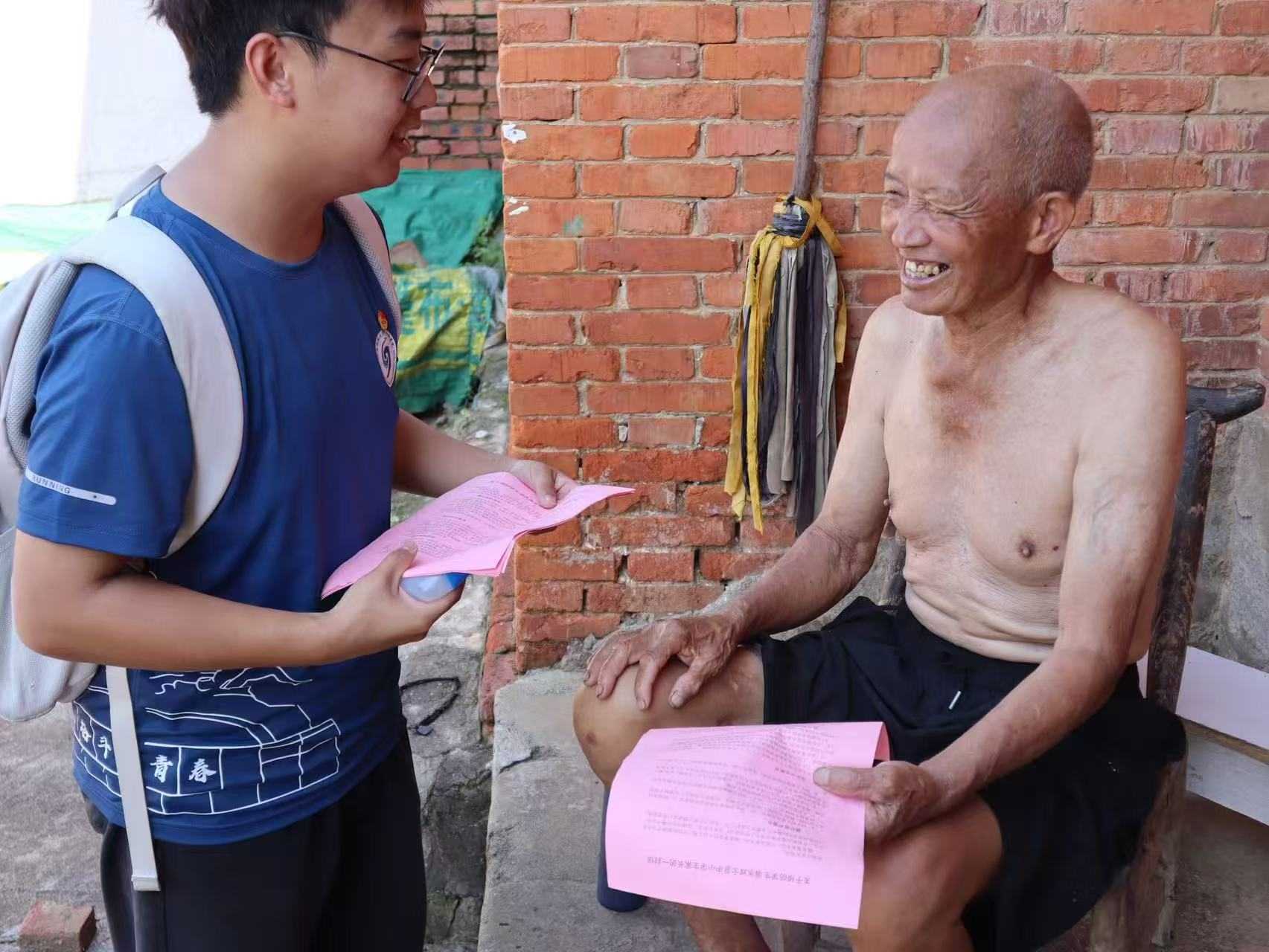 完成防溺水宣傳活動后,實踐隊員們把幫扶的目光投向了村中高齡老人,著手幫助他們進行高齡老人補助認證工作。