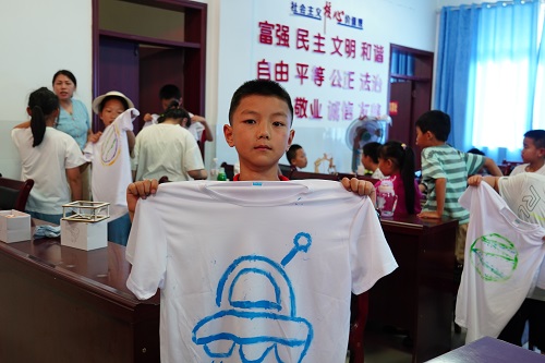 在科技主題T恤繪制環(huán)節(jié),孩子們以丙烯顏料為媒介,將腦海中的飛船、機(jī)器人等未來(lái)科技元素轉(zhuǎn)化為畫(huà)布上的視覺(jué)表達(dá)。在志愿者引導(dǎo)下,他們通過(guò)色彩搭配與構(gòu)圖設(shè)計(jì),傳遞對(duì)未來(lái)科技的理解與想象。當(dāng)一件件作品呈現(xiàn)在眼前,孩子們不僅展示了藝術(shù)創(chuàng)造力,也完成了科技概念向具象表達(dá)的轉(zhuǎn)化。