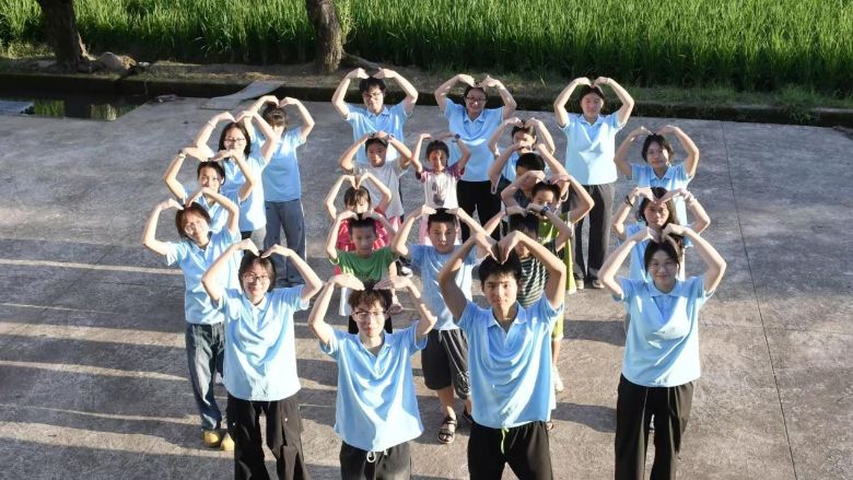 活動(dòng)尾聲,外國(guó)語(yǔ)學(xué)院Sunshine Action志愿服務(wù)小隊(duì)成員們與小朋友們?cè)谔剖献陟襞粤粝铝撕嫌啊?/div>