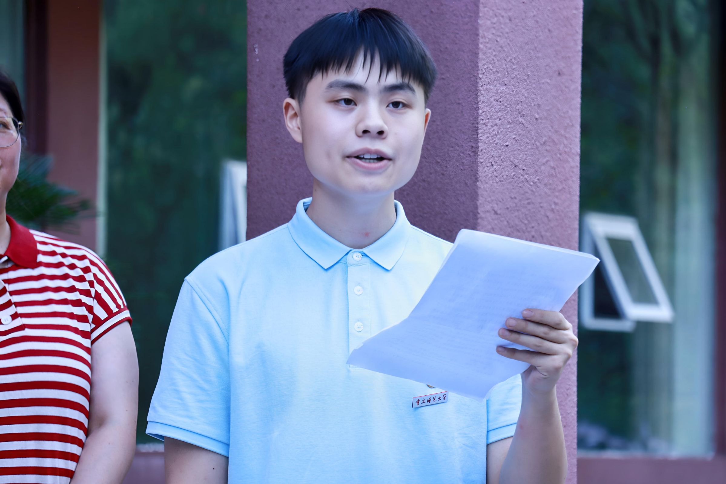 圖為“青春飛揚(yáng)·融情夏鄉(xiāng)”三下鄉(xiāng)團(tuán)隊隊長李昊男發(fā)言 李夢珂攝