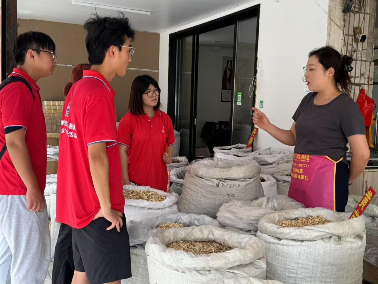 隨后,小隊(duì)深入亳州中醫(yī)藥交易市場。市場內(nèi),藥香彌漫,攤位上擺滿琳瑯滿目的中藥材,亳芍、亳菊等道地藥材尤為醒目。隊(duì)員們穿梭其間,與藥商交流,探尋非遺炮制技藝在市場流通中的體現(xiàn)。一位經(jīng)營多年的藥商介紹,當(dāng)?shù)刈裱沁z炮制法加工的藥材,因藥效穩(wěn)定、品質(zhì)上乘,深受各地藥企青睞。隊(duì)員們還學(xué)習(xí)辨別經(jīng)非遺技藝處理的藥材,從切片厚度到炮制火候痕跡,感受傳統(tǒng)工藝對藥材品質(zhì)的雕琢,體悟非遺在市場中延續(xù)的活力