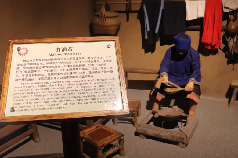 瑤族傳統(tǒng)美食篇章同樣吸引隊員們的目光。煙熏肉凝聚山居民族食材保存智慧,打油茶作為國家級非遺,以茶葉、糯米等為料,借簡單炊具成就消食健胃的綠色美食,成為瑤族招待賓客的名片。隊員們透過美食,探尋到瑤族人民順應(yīng)地理、熱愛生活的文化根源。
