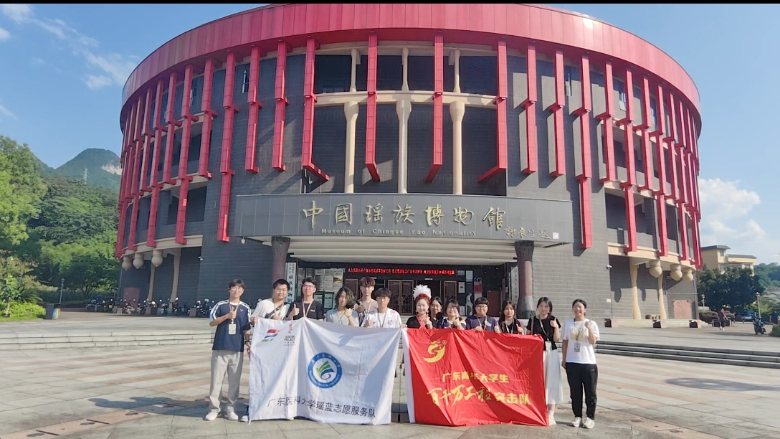 參觀到達(dá)尾聲,隊員們與講解員在博物館門口合影。這一幀畫面,定格了瑤族文化從神話溯源到生活百態(tài),從傳統(tǒng)技藝到社會治理。瑤藍(lán)志愿服務(wù)隊在瑤族博物館完成一場民族文化的深度挖掘。這場相遇,不止是知識的獲取,更是青春傳承使命的點燃。期待他們以行動書寫瑤族文化傳承新篇,讓瑤族文化這顆明珠,在文化交流交融中愈發(fā)璀璨。