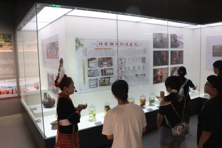 參觀到“神奇獨特的瑤醫(yī)藥”區(qū)域,瑤醫(yī)藥智慧盡顯。藥浴(瑤浴)尤為吸睛,它依托深山草藥,經(jīng)泡制、蒸煮融入熱水,往昔瑤族民眾借此祛病養(yǎng)生,驅(qū)寒除濕、舒筋活絡(luò),是與自然共生的康養(yǎng)密碼,讓隊員們看到民族傳統(tǒng)醫(yī)藥的實踐力量。