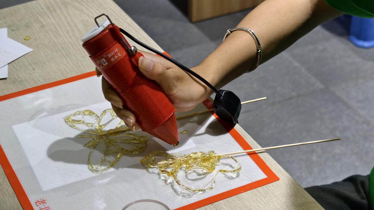 圖為實踐隊成員制作昆蟲糖畫。(蔣啟睿 供圖)