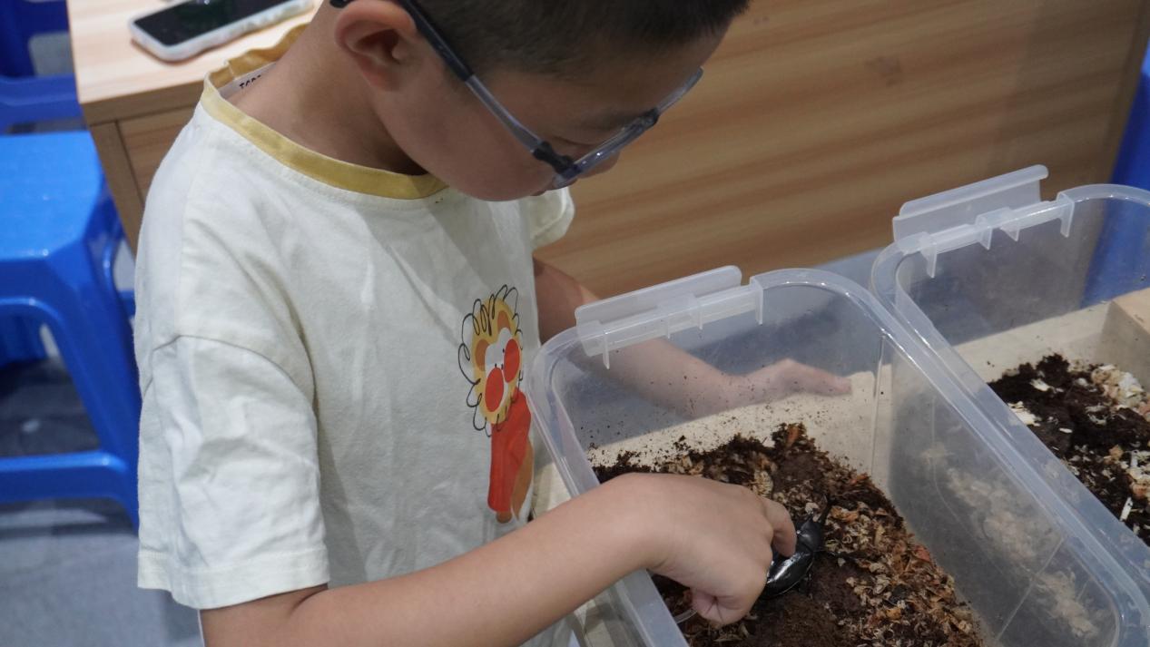 圖為小朋友觀賞活體昆蟲標(biāo)本。(蔣啟睿 供圖)