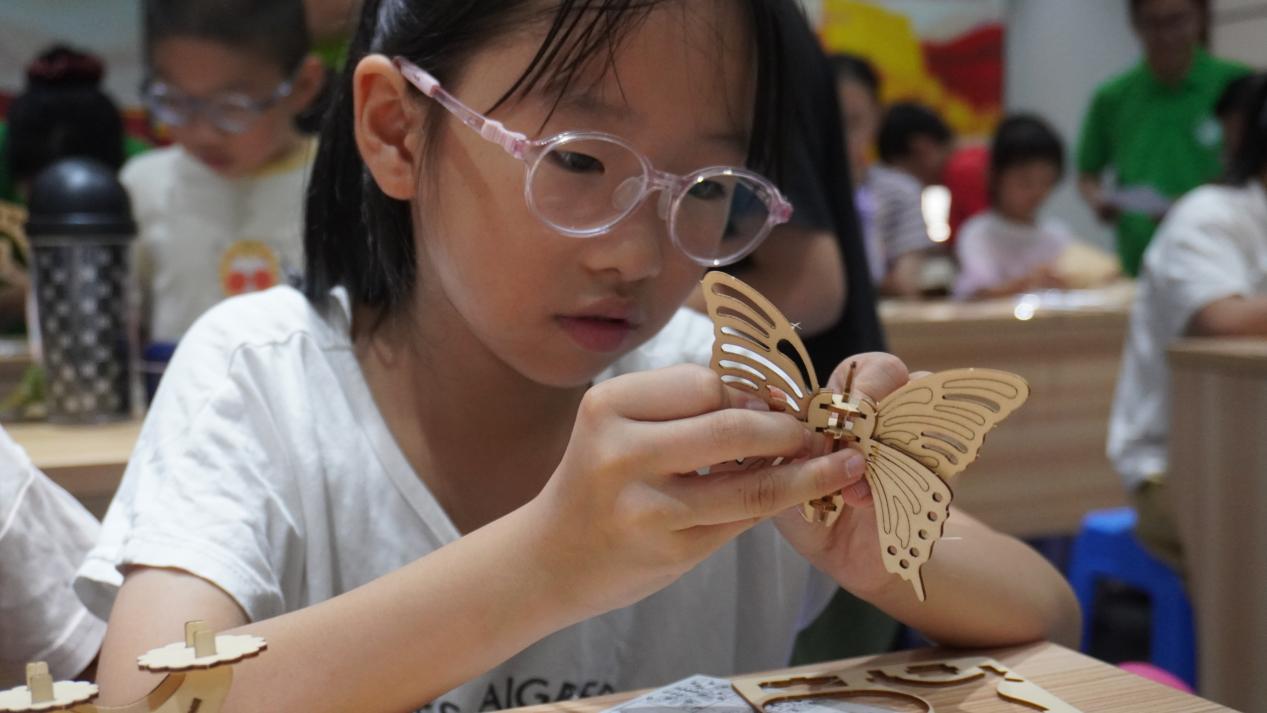 圖為小朋友拼裝昆蟲模型。(余金曉 供圖)