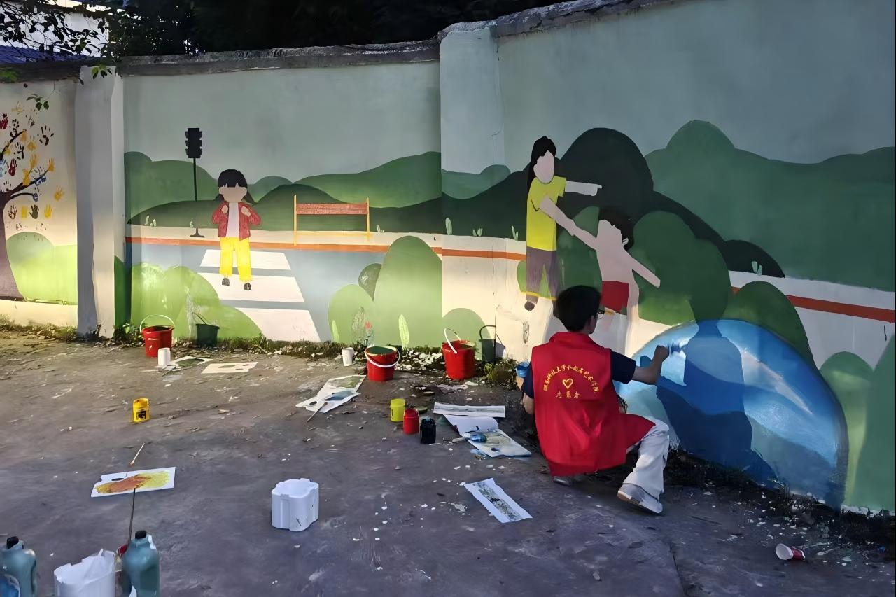 初遇鄉(xiāng)村教育:在貧瘠中看見光芒 城江學(xué)校的景象讓我深受觸動(dòng):全校五個(gè)年級(jí)僅五個(gè)班,每班十來個(gè)孩子,四位老師扛起所有教學(xué)任務(wù)。校長像母親一樣,從備課到關(guān)校門都親力親為。當(dāng)我們開設(shè)美育和安全教育課時(shí),孩子們盯著黑板的專注眼神,做筆記時(shí)攥緊鉛筆的小手,都在訴說著對(duì)知識(shí)的渴求。墻繪組的成員們清晨六點(diǎn)就著晨光調(diào)色,傍晚打著燈在墻上勾勒線條,汗水浸透的T恤和被曬紅的手臂,讓我讀懂了"堅(jiān)持"二字的分量。