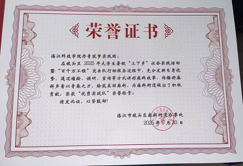 2025年暑期,湛江科技學院丹青筑夢實踐團深入麻斜街道,開展為期14天的“三下鄉(xiāng)”社會實踐活動。從文化墻繪到鄉(xiāng)村調(diào)研,團隊用腳步丈量鄉(xiāng)土,用藝術傳遞溫情,用行動詮釋擔當。歷經(jīng)14天本實踐團圓滿完成各項任務,于2025年6月30日在麻斜街道新時代文明實踐所召開總結大會,回顧奮斗歷程,表彰先進典型,共話未來愿景。