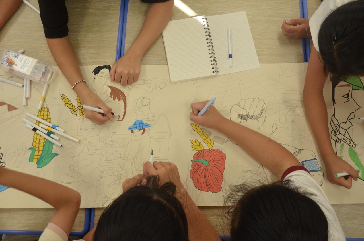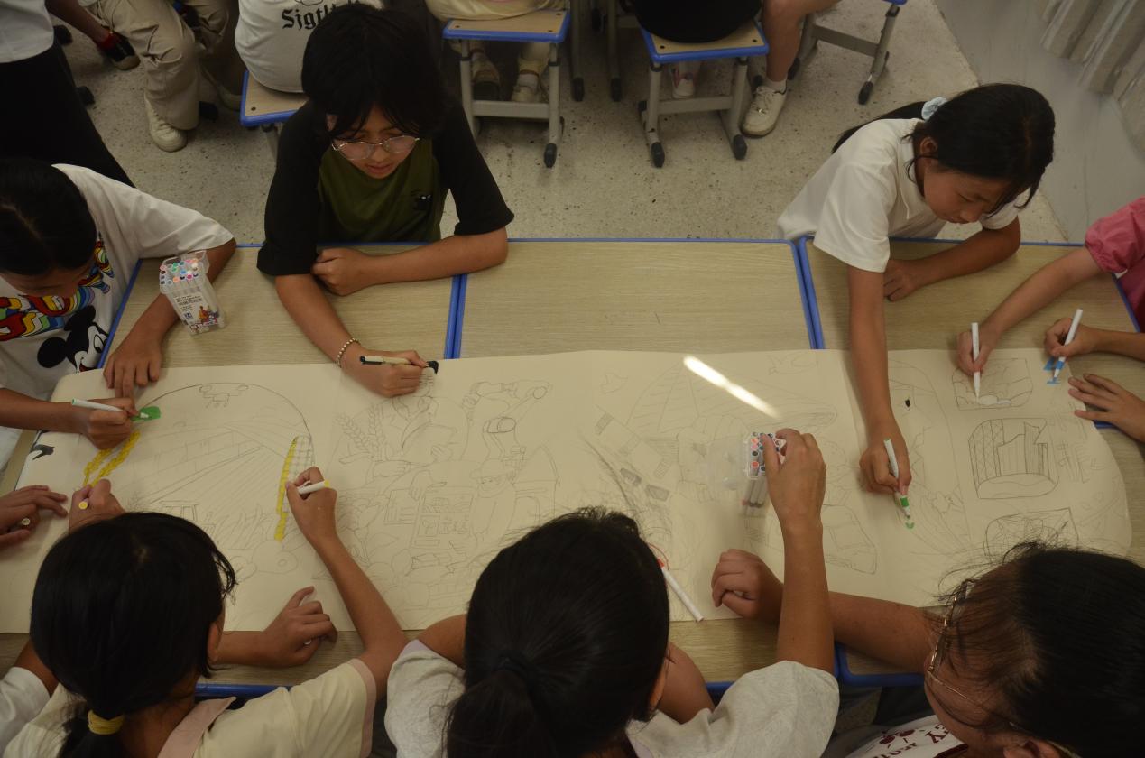 彩墨交融,山海共鳴。在集體創(chuàng)作中,學(xué)生們不僅加深了對家鄉(xiāng)自然與人文之美的認(rèn)知,更將歷史傳承的厚重感與時(shí)代發(fā)展的自豪感融入畫作,文化自信油然而生,建設(shè)家鄉(xiāng)的熱情被進(jìn)一步點(diǎn)燃。