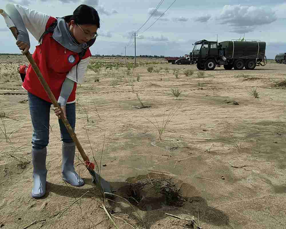 從江河奔涌到荒漠孤煙,從濕地氤氳到青山滴翠,習(xí)近平總書記為美麗中國建設(shè)擘畫的藍(lán)圖,始終指引著前行方向。此次實踐中,綠色發(fā)展的理念如種子般深植青年心間,治沙精神化作行動的號角,讓尊重自然、守護(hù)生態(tài)的意識在青春血脈中奔涌。未來6天,“梭梭青苗護(hù)民勤”美麗中國實踐團(tuán)將以青春作筆、汗水為墨,在構(gòu)筑西北生態(tài)屏障的征程中,書寫屬于新時代青年的綠色答卷,讓治沙精神在守護(hù)山河的實踐中代代相傳。