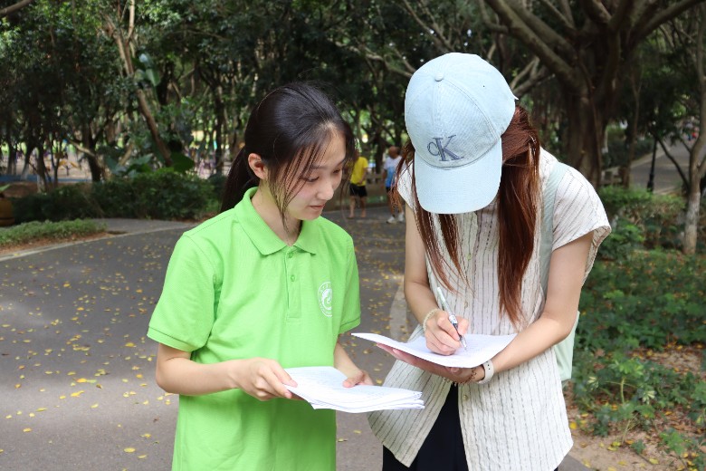 圖為實踐隊成員邀請市民填寫調(diào)查問卷 通訊員 黃雨彤 攝