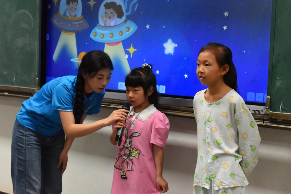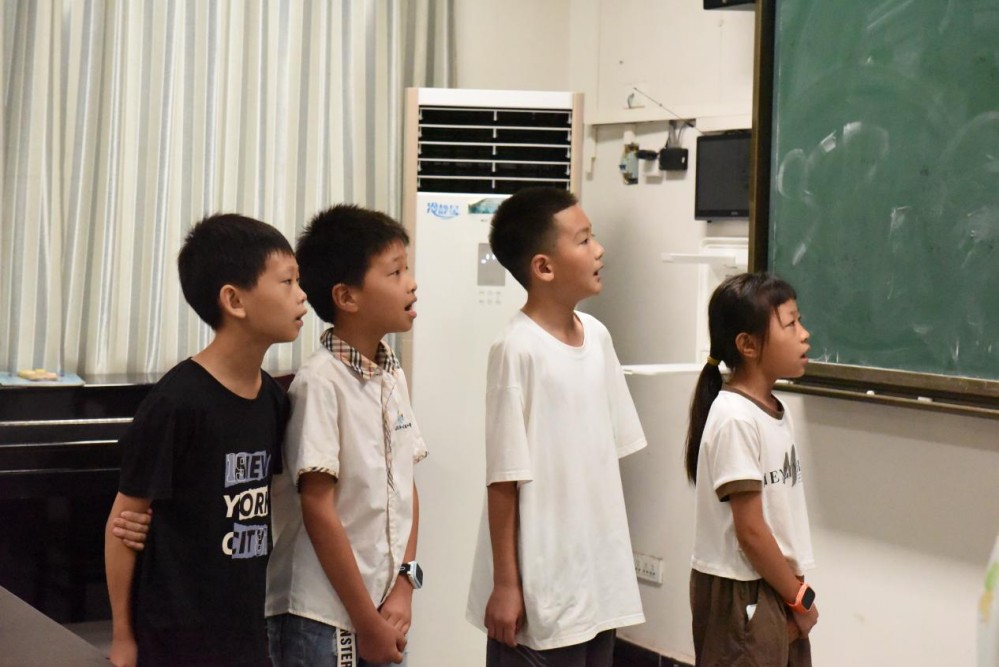 在“夢想小舞臺”環(huán)節(jié),小朋友們分組演唱了課堂所學(xué)的《左手右手》,并在志愿者的鼓勵下,紛紛走上講臺,唱出自己喜愛的歌曲。他們清澈稚嫩的歌聲與志愿者們溫暖有力的聲音交織在一起,在教室里久久回響。