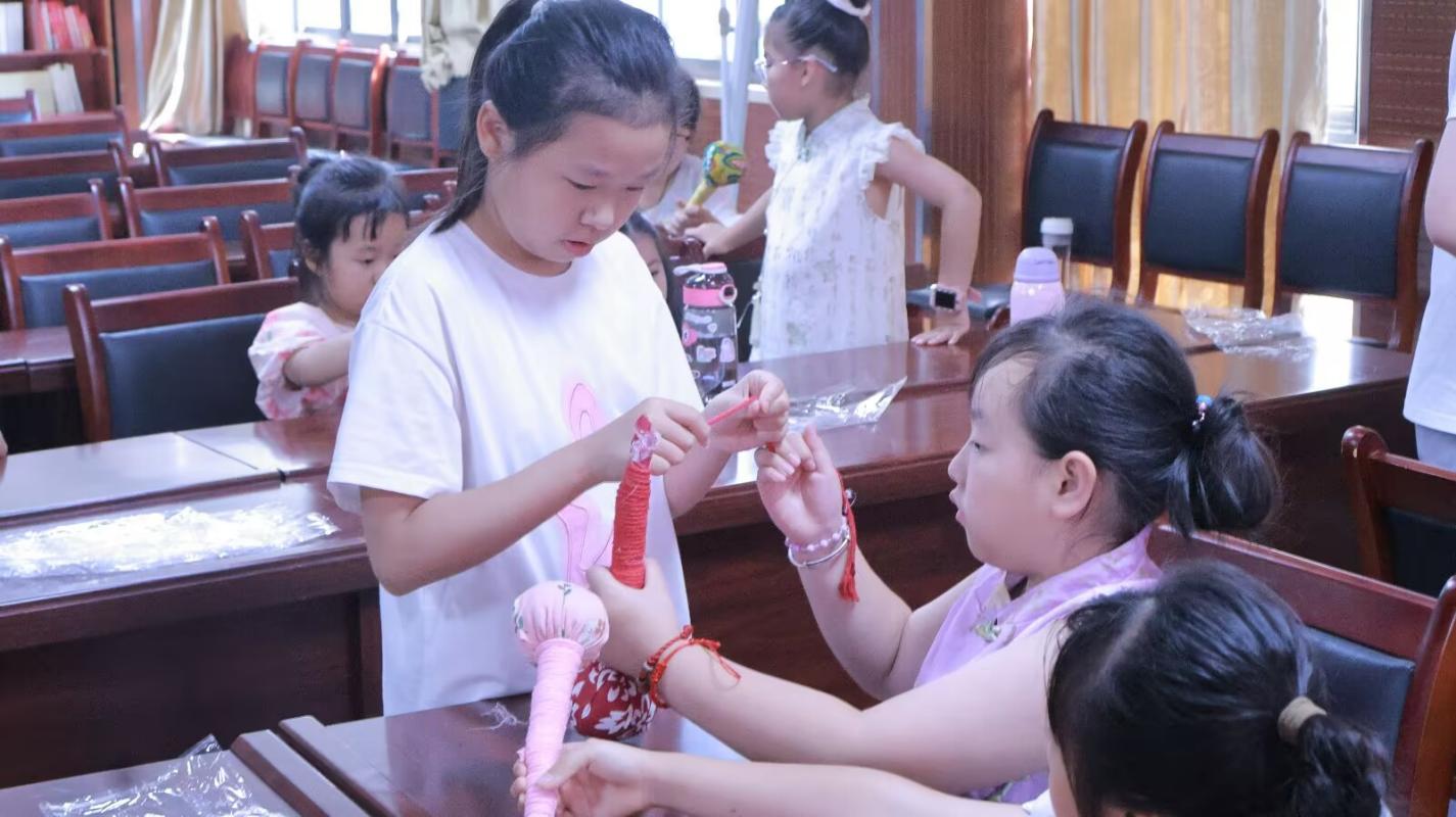 課堂尾聲,孩子們將親手制作的艾草錘送給街道打掃工人、保安叔叔及社區(qū)老人,用這份帶著溫度的手工作品傳遞敬意與關(guān)懷,讓傳統(tǒng)節(jié)日的溫情與善意在互動中延續(xù)。