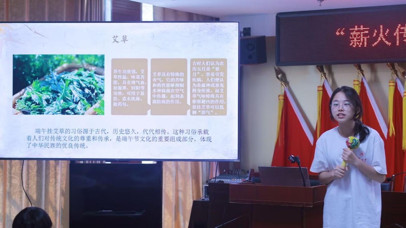 課堂伊始,魯?shù)つ堇蠋熓殖职蒎N,借助端午時節(jié)艾草驅(qū)邪納福的文化象征,開啟一段文化之旅。魯老師通過課件引領(lǐng)學生穿越時空,見證艾草如何從遠古祭祀的神壇走入尋常百姓的養(yǎng)生日常。其間,老師以《紅樓夢》中艾草錘的雅稱——“美人拳”為引,巧妙地揭示精巧的外形與文化魅力。“由古至今,瑤族人民把明清的艾草錘文化與現(xiàn)代的刺繡文化緊密結(jié)合起來,用他們的智慧與創(chuàng)造力將艾草文化傳承發(fā)展至今。”在魯?shù)つ堇蠋熇L聲繪色地介紹下,教室中響起驚嘆聲,“原來小小的艾草錘承載著這么厚的文化!”