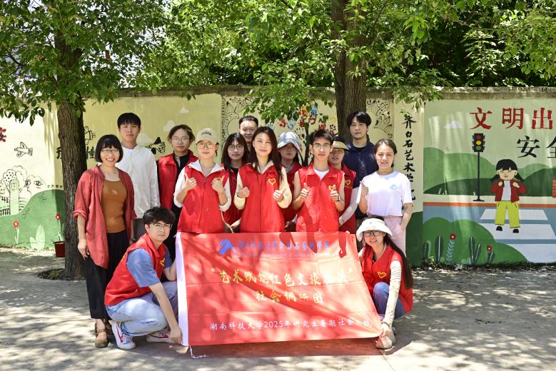 在城江小學(xué)與學(xué)生們的合影 校門(mén)旁的圍墻成了我們的“流動(dòng)課堂”。起初只是想為這面掉皮的灰墻添點(diǎn)色彩,后來(lái)索性決定畫(huà)上交通安全、防溺水、禁毒、防火災(zāi)等宣傳畫(huà),讓墻變成會(huì)說(shuō)話(huà)的“安全課本”。調(diào)顏料時(shí),總有孩子扒著教室窗戶(hù)看,有個(gè)戴紅領(lǐng)巾的男孩踮著腳喊:“老師,畫(huà)溺水的要加個(gè)救生圈!我爸說(shuō)那是‘救命圈’!”我們真的在水邊添了橙紅色的救生圈,他立刻轉(zhuǎn)頭跟同伴炫耀:“你看你看,我說(shuō)得對(duì)吧!”調(diào)研團(tuán)成員們迎著烈日,精心繪制,一筆一劃間,將安全教育內(nèi)容呈現(xiàn)在墻上。路過(guò)的老師,同學(xué)和家長(zhǎng)都停下來(lái)看,有個(gè)奶奶拉著孫子的手逐幅講解,就像在逛真正的課堂。