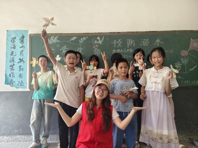 “藝術(shù)賦能紅色文旅振興”社會(huì)調(diào)研團(tuán)出征合影 初進(jìn)城江小學(xué)時(shí),我對(duì)“美育”兩個(gè)字是有些忐忑的。教室的白墻斑駁得像幅抽象畫(huà),孩子們的文具袋里最多的是半截鉛筆,可當(dāng)我把紙杯、吸管擺在桌上,他們眼里的光瞬間把整個(gè)教室照亮了。教做紙杯風(fēng)車(chē)時(shí),有個(gè)男孩把紙杯畫(huà)成了波浪紋,說(shuō)要“讓風(fēng)車(chē)轉(zhuǎn)起來(lái)像村里的小河”;扎馬尾的女孩則在扇葉上畫(huà)上了彩虹,“這樣風(fēng)車(chē)轉(zhuǎn)起來(lái),就像把彩虹掛在了天上”。下課鈴響時(shí),走廊里飄著一串轉(zhuǎn)動(dòng)的風(fēng)車(chē),紙杯和風(fēng)碰撞的聲響里,我忽然明白:教育的魔力從不在教具的精致,而在孩子們用想象力給平凡物件注入的生命力。傍晚路過(guò)教師辦公室,看見(jiàn)校長(zhǎng)正用紅筆在泛黃的備課本上批注,字跡力透紙背——他們守著簡(jiǎn)陋的講臺(tái),卻把教育的火種護(hù)得比誰(shuí)都緊。