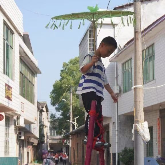 老巷里,周老師的兩個(gè)小弟子正穩(wěn)穩(wěn)踏著一米五高的高蹺,手中花傘輕搖,傘上彩紋流轉(zhuǎn),恰似這綿延不絕的民俗文脈,在堅(jiān)守與創(chuàng)新中,悠悠走向更遠(yuǎn)的未來。