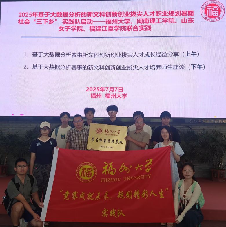 為了響應(yīng)習(xí)近平同志在《扎實(shí)推動(dòng)教育強(qiáng)國(guó)建設(shè)》中提出“加強(qiáng)拔尖創(chuàng)新人才自主培養(yǎng)”號(hào)召,打通束縛新質(zhì)生產(chǎn)力發(fā)展的新文科創(chuàng)新創(chuàng)業(yè)拔尖人才堵點(diǎn)卡點(diǎn),2025年7月7日福州大學(xué)聯(lián)合閩南理工學(xué)院、山東女子學(xué)院、福建江夏學(xué)院基于大數(shù)據(jù)分析的創(chuàng)新創(chuàng)業(yè)拔尖人才職業(yè)規(guī)劃暑期“三下鄉(xiāng)”實(shí)踐隊(duì)在福州大學(xué)正式啟動(dòng)。